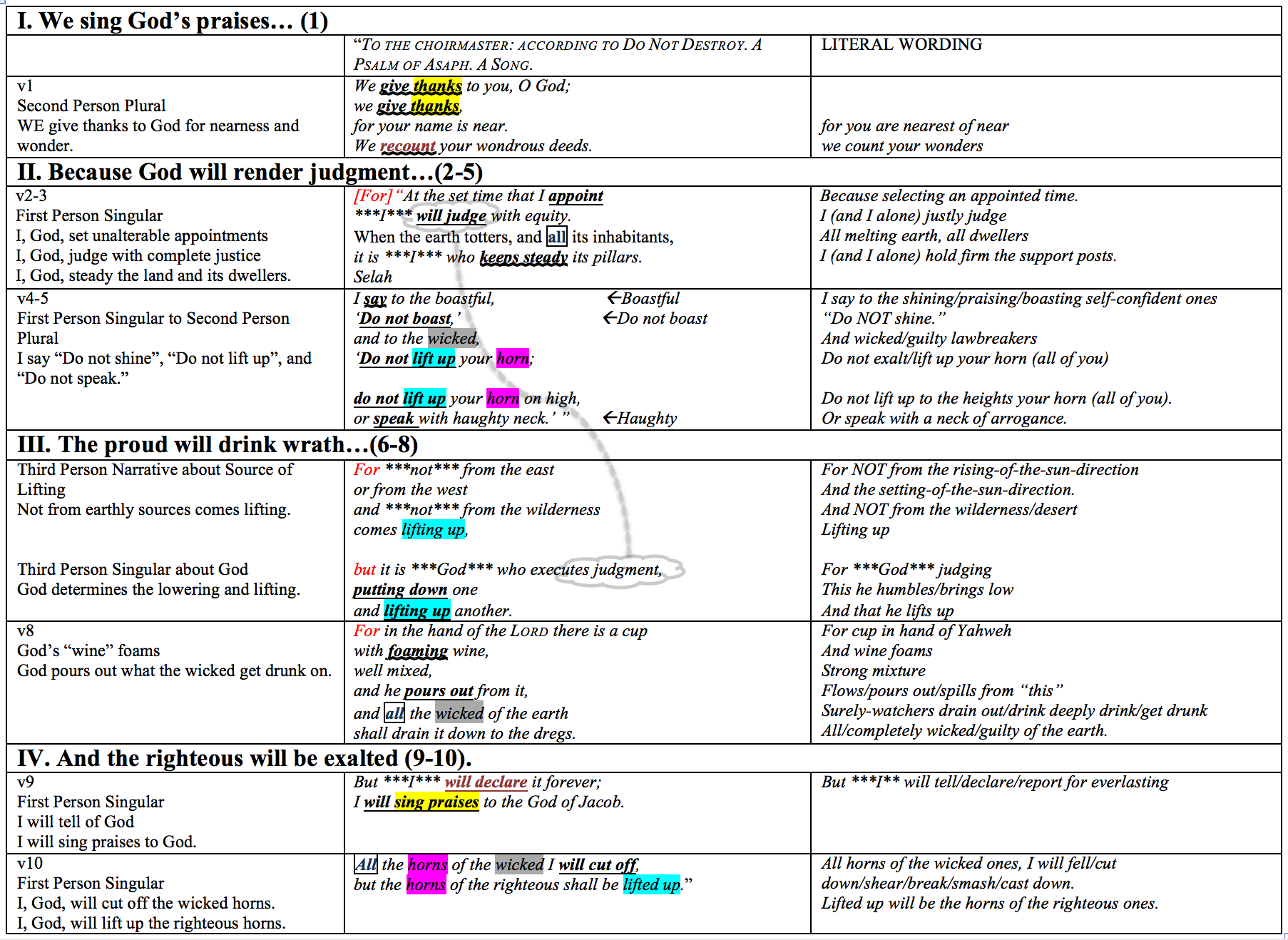 Why do we sing God’s praises while wickedness reigns? Are we to be pitied for our ignorance? Why did Christians sing God’s praises as they were lit on fire or fed to lions for sport? Or killed by the very people to whom they took the Gospel? Can we really claim allegiance and honor for a God who is said to be all-powerful and who epitomizes all that is good and right, if he allows evil to not only exist but to flourish? Psalm 75 bears the back-and-forth song of God’s people pleading for answers to these questions…and God answers.